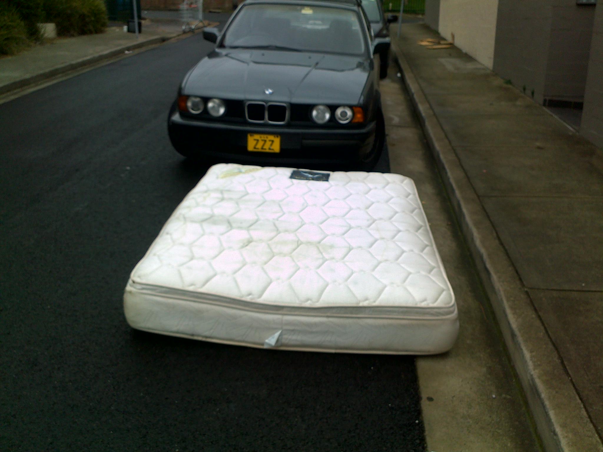 This meddlesome mattress has been taking up car spaces around our street recently – I’m pretty sure I saw a ranger giving it a ticket this morning. But every mattress has a silver lining and today this one conspired with an unusual car number plate to throw up some random humour on an otherwise grey old day. I promise this is not a set up, I just walked out of my house and the gag was sitting there waiting for me to find it… PH