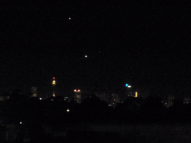 My impressionist (ie slightly blurry) view of planets Mercury, Jupiter and Venus (with Mars not quite visible I think) over Sydney this morning…
