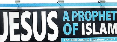If you happen to commute along the M4 and also Victoria Rd (you are to be deeply pitied for that commute) then you may feel like you’re in the middle of a friendly, billboard-sized banter between a Christian and a Muslim. And the topic? Jesus.